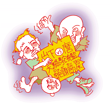 | 皆様はご趣味というものはいかがでしょうか。当方は囲碁というものを好んだせいで、今やヘタの横好きがザルの中で縦漬けになっている有り様だ。古来、一定の支持者はいるが地味な分野と思われていたこの競技が、昨今、多数の小学生が日本棋院に詰めかけるというサッカーもかくやという大ブームになっている。「ヒカルの碁」というマンガが大ヒットし、テレビアニメにもなったのが原因だ。小学生の男の子に平安時代の囲碁打ちの怨念が乗り移って始まる成長物語で、修業と上達、ライバル、友情、ガールフレンド、師匠、などのシチュエーションはほとんどのそれ系と同じ。これが永久のヒットパターンなんですね。 それならジャズも「ヒカルのジャズ」というマンガを作ろうという話になった。「おお、ヒカル、ついにツー・マイナーセブン、ファイブ・セブンをマスターしたな。もうどこへ出ても大丈夫だ」。それで、ジャムセッションに行くと、山下鬼左衛門雲助などという奴が現れて、ひじ打ちの連発。「げ、こんな手があったのか!」とのけぞるヒカル。「今までぼくのやってきたことは何だったのだ!」と叫んで、駈け去る。まだまだ修業は続くのであった。誰の怨霊が取りつくことにするのかは難しい。パーカーでもパウエルでもデイヴィスでも実はクスリ欲しさに取りついたという心配はあるからね。「ついにヒカルはジャンキーになったのであった」ではいかんもんね。ジャズは色々難しいです。 紐月育日 NYは「イリディウム」というジャズクラブに一週間の出演。この店の場所は51番街とブロードウエイの角という、ミュージカル劇場街のまっただ中で、「ウィンター・ガーデン」劇場と「スターダスト・カフェ」にはさまれている。ここで、おのぼりさんを奪い合うという戦いになった。というのも、ここはヴィレッジの店のように、バンド仲間が気軽に楽屋に来るのも大変で、招待も一人一日一人、それもドリンク代ミニマム10ドルはいただくというしっかりした店なので、仲間が気軽に寄ってバーで騒いでいるということができない。火曜日から日曜日まで6日間連続で計14セット、入れ替えあり、というのはNYだけで起きる特殊過酷労働条件だ。 紅月雨於日 長いことハリウッドに移っていたテナー・サックスのベニー・ウォレスが初日に客で来ていた。今はコネティカットにいて、NYで活動を再開している。土曜日に夕食を一緒にして、ヨーロッパでの最初の出会いから、第1回「マウント・フジ・ジャズフェス」での初来日から、今日までの四方山話をする。楽器を持って来てくれたので、1曲飛び入りしてもらう。最初のセットの2曲目に「ブルース・ヤマシタ」を吹いてくれた。 麿月赤兒日 同じ週に「ジャパン・ソサエティ」では麿赤兒率いる「大駱駝艦」が公演をしていた。NYタイムスにも写真入りの大きな記事が出るなど、連日満員の大成功だった。土曜日には公演が終わるので、日曜日に余勢をかって、こちらに来襲するとの話が持ち上がっていた。麿さんとは1967年の唐十郎の赤テント旗揚げ公演以来のつきあいで、お互いに乱入来襲数知れずの仲だからもちろん否応はない。日曜日の最終セットは飛び入りミュージシャン可という不文律もあり、丁度いいやと待機する。やる曲はNYトリオ版の「ボレロ」になる。初日の本番前に、ベースのセシル・マクビーが今回のレパートリーに入れないかと提案してくれたのと、去年ベルリンで亡くなった麿さんの弟子の古川あんずが、1985年の自作公演の時に山下にリクエストしてピアノ版「ボレロ」ができたといういきさつがある。麿さんは「あんずの為にもボレロがいいか」と賛同した。 白塗月無眉日 日曜日のセカンドセットには、大駱駝艦の一党が集結。客席の半分は、ソリアゲ頭でマユ無しの男共に占拠された。背広姿の者もいて、実にコワクも異様。最終曲の前に、何が起こるか一応アナウンスして「ボレロ」を始める。客席から深紅のドレス姿で白塗り禿頭の麿さん登場。ステージ下手からはお相手の若林淳さんが上半身裸で登場。からんで舞う。途中、当然ながら客席に倒れかかるなどの挑発行為もあり、場内騒然、いやもう大騒ぎ。最後は裸男が深紅のドレス姿の麿さんを肩車で振り回して床に叩きつけるという荒技エンディングだった。あとで聞いたら麿さん、あの格好のままでブロードウエイをパフォーマンスをしながら移動してきたらしい。新宿もNYも区別しない麿赤兒のパワーは健在だ。実はこのセットの1曲目には、NY在住を始めたドラムの高橋信之介が叩いて、しっかり玄人受けしたのだが、その記憶もトリオの一週間の蓄積も吹き飛ぶ、駱駝嵐の来襲だった。それにしても、多分ミュージカル帰りに、仲間のジャズ通の人の提案でNYならではのジャズを聞いて自慢の土産話にしようと入って来ていた中央のテーブル席の白髪の目立つ裕福そうなドイツ人グループの皆様、えらいものをお見せしましたが、つまりこれもNYであ
