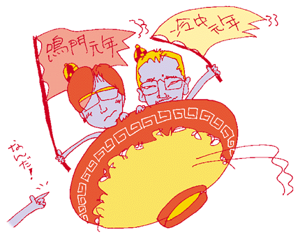 | 果月物日。皆さまはおフランスのスーパーでお買い物をされたことがおありでしょうか。果物をそのままレジに持っていくと、泥棒とまちがえられます。戻れ戻れという仕草に、どういうことかと思案していると、親切なホモ男(とは決まってないけど)が現れて教えてくれた。果物は種類ごとに秤に乗せて、出てくるレシートを袋に貼ってその袋に果物を入れる。バナナはバナナ、オレンジはオレンジ、釘は釘、紙は紙ってこれは落語の「浮かれの屑」だけど、そういうわけで、「あは〜ん、オマタ、また、お利口になっちゃったあ〜」っていうフレーズも思い浮ぶような発見でございました。 帝月国日。帝国ホテルの近くでタクシーに乗ったら、座席にホテルの部屋の鍵らしいものが忘れてある。運ちゃんに言うと「あ、あの人だ」と今降りたばかりの外人夫婦を指さした。そういえば、車内にはまさに「むせかえるような高級香水の匂い」が充満している。降りてロビーまで追いかけて呼び止めた。鍵を渡すと、映画から抜け出てきたような高級な身なりの白髪の夫妻はびっくりしつつ「ありがとう!」の連発。「何と親切な人のいる国でしょう」などと言って金を差し出して手渡そうとする。「いいから」と言うまもなく渡されてしまう。嫌ならさっさと逃げてくればいいのに、受け取るのはやはりイヤしいバンドマンだ。車に戻って見ると百ドル札が二枚。運ちゃんと山分けにすることにした。百ドル札を手にしてとまどう運ちゃんに「どっかで両替出来るはずだから」などと言う。随分前の話で、まだレートは高い頃だった。まるで終戦直後か映画「八月十五夜の茶屋」風だが、なぜか急に今記憶が甦った。ただし、あの金をどうしたかはさっぱり記憶がない。確かにあのまま黙って鍵を取って、隙をみて部屋に入り込んで根こそぎカッパらうという人間もいるだろうから、感謝される理由は分かる。 スタ月パ日。NHKスタジオパークに出演。昼間っから鍵盤を平手打ちするフィルムが流れるなど暑っ苦しいオープニングで恐縮する。生でも肘打ちを見せろというので、恐縮しつつ「ぐがん」をソロで演奏。紹介フィルムは69年の早稲田のバリケード内演奏のドキュメントや、米国シンシン刑務所内での囚人たちとのセッションなどもあって、ますます恐縮だ。ちなみにバリケード内演奏フィルムの使用権は某局が持っていて使用料は一秒いくらなどべらぼうに高い。N局以外では手が出せないとも言われる。 刑務所セッションは、明治時代に監獄を設計した祖父の足跡をたどるという以前のテレビ番組からのもの。更生プログラムにジャズを習得するというコースがあって、それをやっている人たちとステージで演奏し、入所者が聞くというものだった。ちなみに現場では「プリズナー」ではなく「インメイト」という。日本でも囚人とは言わないはずだ。入所者でいいのかどうか定かでないままに書いているが、その入所者演奏家仲間が「この間まですごく上手いサックスがいたのだが、出て行ってしまって残念だ」と価値観が混乱することを言っていた。その頃シーンから消えていたサックス奏者がいなかったか、思わず考えてしまった。 そのスタパでは、かつてあった「全日本冷し中華愛好会」の話を一コーナーでとりあげた。打ち合わせの時に、思わずべらべらしゃべったら、アナウンサーの顔に限りない疑惑の表情が浮かぶのに気づいた。これは全部冗談だから、ということが伝わった瞬間から、爆笑に転じてくれたのは助かった。たしかに、よく考えてみると昨今のカルト集団の要素が全てあることに気づく。「冬にも冷し中華を食わせろ」という最初の動機はすぐさま「そのような矮小な要求だけでは世の中は変わらない」という過激派の思想にとって代わられる。それを中心にして、ありとあらゆる議論が巻き起こる。言い出しっぺの本人(つまりおれ)が、そのまま初代会長というものにおさまりかえり、勝手に元号を「冷中元年」と定める。疑似国家を作って何々省などと称していたカルト集団もあったが、元号までは定めなかっただろう、どうだ!って威張るのもどうかと思うが、そういうわけで、たとえば最近の白装束集団報道を見てあらためて気がついたのは、こういう集団には必ず「敵」が必要だということだ。これもちゃあんとやっておりましたよ。ある日、わしは急にこう言い出したのだ。「敵は、<東アジア・マントル連合>の馬鹿者どもである」以来、全ての不都合は「東アジア・マントル連合の馬鹿者ども」(後にはここまでが正式名称になった)の仕業になった。他にも全員がバスでさすらうアイディアも浮上していたし、言い出すときりがない。ご興味のある方は、晶文社「へらさけ犯科帳」収録の「冷中顛末記」をご参照ください。 スタパには「全冷中二代目会長より初代会長へ・・・・」という言葉を含む筒井康隆さんからのメッセージがよせられた。二代目会長の筒井さんは元号を「鳴門元