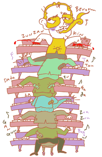 傷月痕日。コンピュータの画面が急に暗くなってそのまま死んだ。修理に出して直ったものを大事に抱えて駐車場に降りるとつまづいた。おっとっとっとっと前に倒れる時に、マシンを抱いたままヒジから落ちた。下になった手の甲がずり剥けた。両手に大4つ小2つの傷だ。バンドエイドをするとじめじめして気持ち悪いので、薬をつけて空気にさらして直した。やがてカサブタが盛り上がり、相当目立つ傷痕となった。必ず「それどうしたんですか」と聞かれる。ミズマ画廊で個展をやっていた筒井伸輔さんも「ピアノでそうなったのかと思った」って言うけど、手の甲ですからね。でも、第一感でピアノを弾いてそうなったと思う人の方が多かったのは事実だ。喧嘩で素手で殴り合ったと言ってイバろうとも思ったがこれは無理。結局笑われるが、皆さまはどうだろうか。修理したばかりのコンピュータを放り出して自分をかばうか。ま、バーカ、そんな所でつまづくかって言われればそれまでなんですけどね。 6月6日。6台のピアノを6人のピアノ弾きが同時に弾こうというとんでもない催しに参加した。ただしこういうこと、初めてではない。大昔(って大げさだけど)何十台のピアノを一緒に弾いたという経験がある。島田瑠璃さん提唱のイヴェントで、参加者はピアニストに限らず、ジョン・ケージやジェフスキーの作品をやるという相当アナーキーなものだった。銀座ヤマハの楽器売り場に並ぶピアノが使用された。今回も新築コンサートホールのミューザ川崎にヤマハのフルコンが揃うという。ホール・アドヴァイザーになっている佐山雅弘が発案して実現したものだ。集まったのは、小原孝、国府弘子、佐山雅弘、塩谷哲、島健という面々。それにしても一体どうするのだと、一年前から皆で集まって会議を開いた。怒号と殴り合いの結果、というのは嘘で、時には伴奏者にもなる忍耐と人徳を鍛えているピアニスト達の話し合いで、以下の出し物が決まった。まず一人一人がその日の為に作った曲を弾く。それからデュオを3組とトリオを2組、最後に6人全員でやる。それにしても6台のピアノの配置やどのピアノを誰が弾くかなど、怒号と殴り合いの問題が山積のはずだったが、これもピアニストの知性と教養と寛容の精神によって合意を得た。どのように6台のピアノを配置したか簡単には説明不可能なのでどうかご想像ください。 本番は、まず山下が前座をやり、続いて島健、国府弘子、小原孝、塩谷哲の順でソロ。弾いた者はそのままピアノに座って待っている。やがて最後に佐山雅弘が出てきて「Kawasaki Reborn Blues」を始めると途中から編曲通りに全員が参加し色々やってエンディングを決めた。そのあとは、国府・山下で「寿限無」、塩谷・小原でダリウス・ミヨーの「Scaramouche」、島・佐山で「スペイン」をやり休憩。後半はまず島・塩谷・山下で島健氏作編曲の「Suite For Piazzolla」。これは名曲かつ難曲で山下はただただ勉強のみでした。次が国分・小原・佐山でミシェル・カミロの「オン・ファイヤー」。それからいよいよ6人揃って「ボレロ」をやる。これはほとんどアドリブ無しで、編曲の塩谷氏が「完璧」と喜んだ演奏になった。アンコールは国府女史編曲の「テイク・ファイブ」。メロディーを割り当てられ、指順を小原氏に教えてもらう破目になった。途中で全員が立ち上がって歩き回りながら手拍子をやるなど客席ともども盛り上がる。こうして前代未聞の試みは無事終了した。再演の声が早くも上がっているので、各ホールはすぐにピアノを6台準備するように。 和月平日。大津のびわ湖ホールで第一部ソロ。第二部金子飛鳥(vn)とデュオ。ジャズマン忠臣蔵の「お軽勘平の道行き」で初演した「Flight For Two」を一般公開する。あとは金子飛鳥作の「Wild Boar」「風の谷」それに「キアズマ」やリクエストの「G線上のアリア」や「砂山」をやった。アンコールは「クルディッシュ・ダンス」。 昼公演終了後、予定より早い新幹線に飛び乗る。混んでいるので誰の隣になるか分からない。案の定、座ろうとした席の窓側で、コクヨの原稿用紙に万年筆で書いている人がいる。今どきすごいなあと思いながらよそを向いていたら、名前を呼ばれた。立松和平さんだった。スリムになっていたので横顔からは分からなかったのだ。びっくりしつつ昔に戻る。和平さんの膨大な仕事の話を聞く。飛行機で書き列車で書く。手書きがいちばんよいという主張にコンピュータを取り出してやって見せる。そういえば大昔に(って大げさだけど)椎名誠さんにも同じことをやったことがあったなあ。椎名さんが今ワープロになっていたらおれのせいだぞ。やがて和平さん「その手、どうしたの?」。わけを話すと、「そんなになるまでピアノを弾くのかなあって、思ったんだよね」と、あの和平節でおっしゃった。ありがたいありがたい。 「CDジャーナル」2005年4月号掲載 |